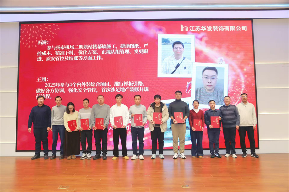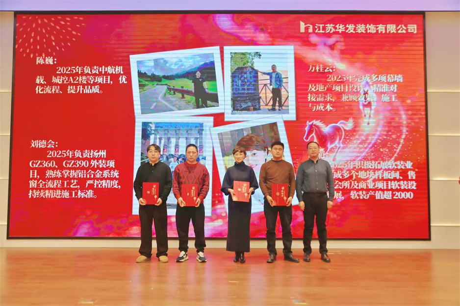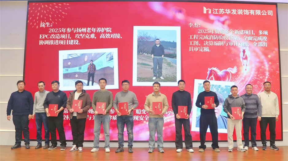 新春團拜會在熱烈的掌聲中拉開序幕,公司董事長耿杰發(fā)表新年賀詞。致辭中,耿杰董事長全面回顧了2025年公司在建筑裝飾行業(yè)深度調整的嚴峻挑戰(zhàn)下,取得的來之不易的優(yōu)異成績:全年產值、利潤雙雙創(chuàng)下歷史新高,成功斬獲2項“揚子杯”、2項省標化工地、1項發(fā)明專利、3項省級工法等多項榮譽,用實干與堅守書寫了華發(fā)人的擔當。展望2026年,耿杰董事長號召全體員工牢記全市建筑業(yè)高質量發(fā)展大會上市委書記王進健的囑托,勇?lián)姑?、爭當專業(yè)市場排頭兵,以開拓進取的銳氣拓寬經營賽道,以精益求精的態(tài)度強化內部管理,同心同德、攜手并肩,共同開創(chuàng)華發(fā)公司高質量發(fā)展的嶄新局面。